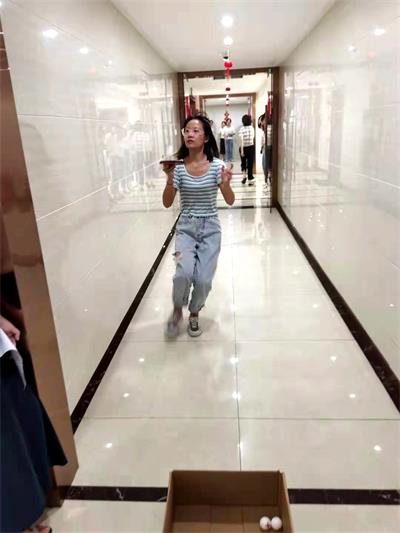 游戲中,所有參賽人員分為四組,每組六人。每小組成員依次使用乒乓球拍將乒乓球顛到指定距離的筐中,在規(guī)定時間內(nèi)成功運送至筐中乒乓球最多的隊,即獲勝,其余名次依次排開。四個小組對抗競爭激烈,充分發(fā)揮小組協(xié)作精神,爭分奪秒,最終決出一、二、三等獎,公司為獲勝員工準備了相應的禮品。